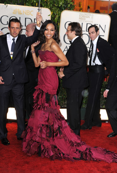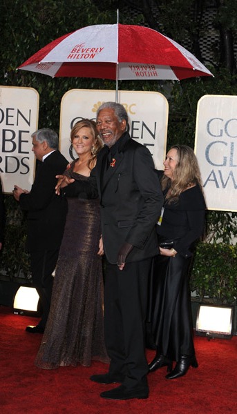 The 67th annual Golden Globe Awards brings all of Hollywood’s heavyweights together at the Beverly Hilton for a night of glamor and prestige. As the award season heats up, check out some of your favorite celebrities looking fabulous as they walk the red carpet. What’s this year’s hautest accessory? An umbrella.