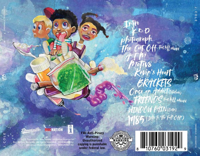 Once again, Cole provides an album without any major guest appearances. Two features come from an artist called kiLL edward, who just might be Jermaine’s alter ego. Thus, KOD is another opportunity for Cole World to go platinum or better without features.