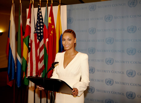 All hail King B. In honor of World Humanitarian Day on August 19, Beyoncé made a visit to the United Nations General Assembly Hall in New York on Friday. Looking elegant in a white top and skirt, the powerful superstar posed for photos in front of the Security Council podium. She will shoot the video for “I Was Here,” the Diane Warren-penned ballad off her latest album 4, in front of a live audience today. It will make its global premiere on August 19.