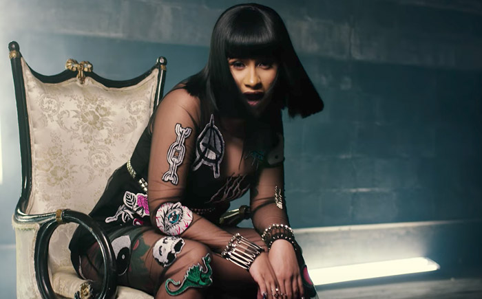 In between her boasts, Cardi shows off her red bottom heels, fancy wheels, and hundred-dollar bills. Later, a fire juggler only adds to the visual’s wild spectacle. All the while, Cardi pulls inspiration from Kodak Black’s “No Flockin.”