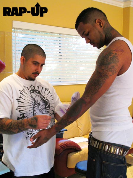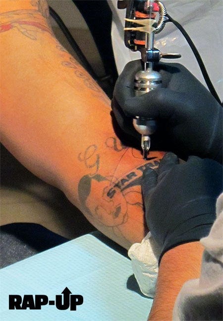 Game hasn’t quite inked a deal with Pharrell’s Star Trak label, but he did get the logo tatted on his left arm. Rap-Up.com was there as the West Coast MC got some fresh ink in Los Angeles on Tuesday (Dec. 8). Pharrell is executive producing Game’s fourth album The R.E.D. Album, due February 16.