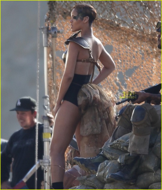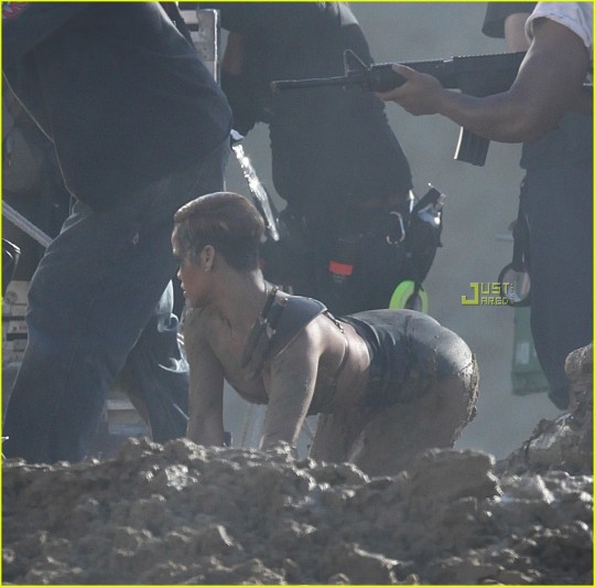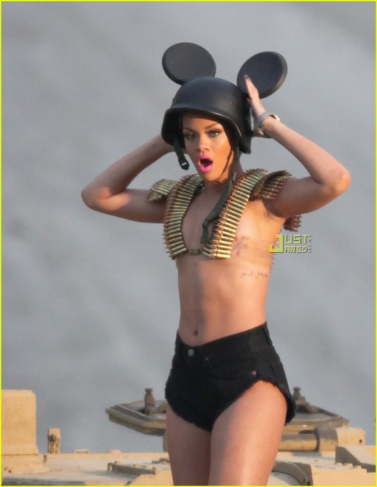 Tanks, guns, camouflage, bullet-type bras. We’re going to war with Ri-Ri and Jeezy as they both get their military on during the shoot for Rated R’s next visual.