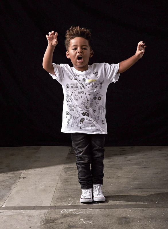 Children will be able to rock the line — which includes shirts, sweatshirts, and accessories — and so will their dads. The clothes range from about $35 to $50 in kids and $45 to $80 in men’s. BASH bomber jackets for kids are being sold for $150, while the adult bombers will retail for $250.