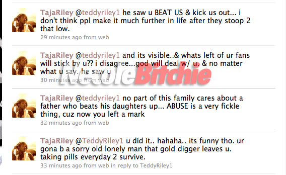 Blackstreet singer Teddy Riley’s 18-year-old daughter Taja Riley has been granted a temporary restraining order against her famous father after he allegedly attacked her and her older sister with a Rock Band video game guitar.
